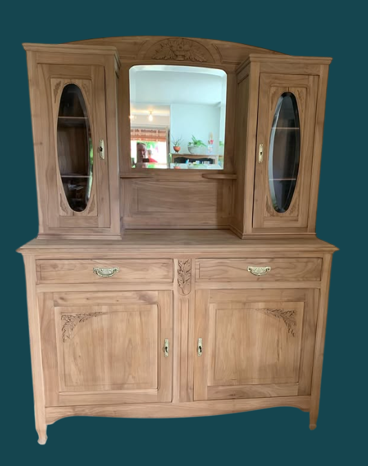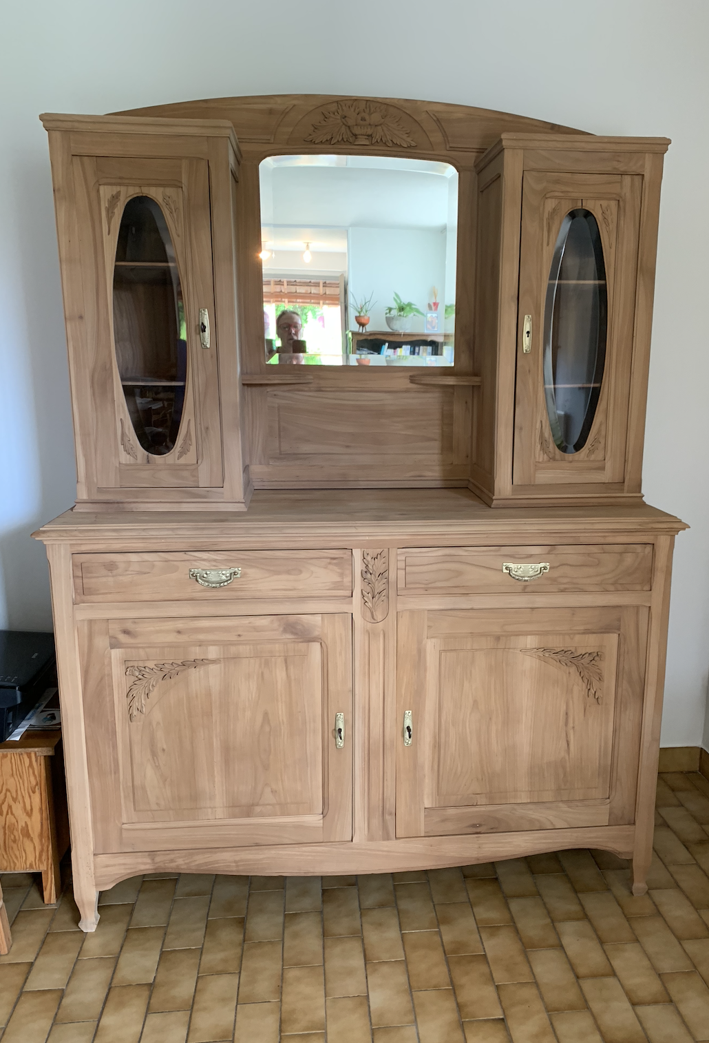 commande client d'un bahut à relooker en or vieilli avec les 4 dessins à reproduire sur fond noir en harmonisant le tout.